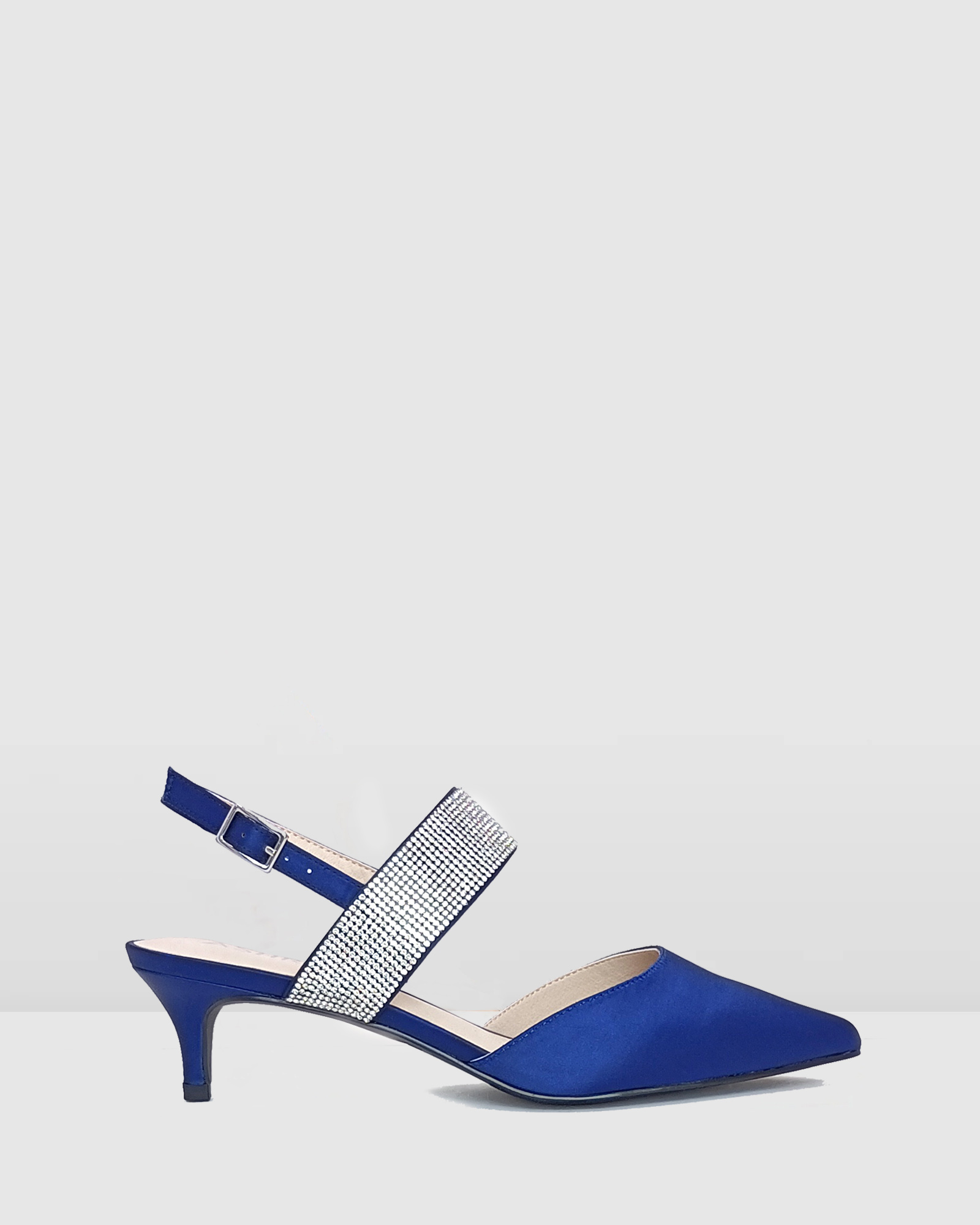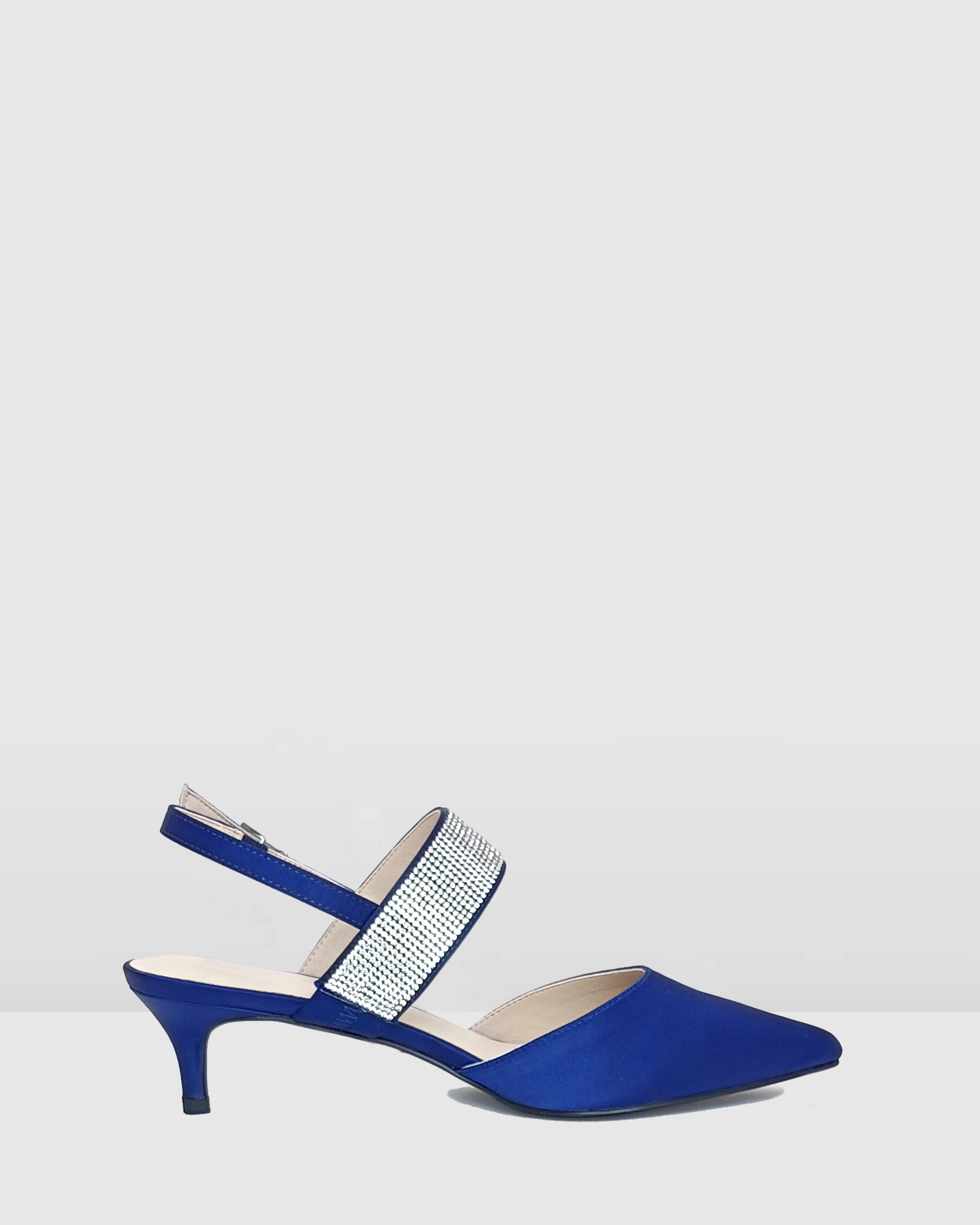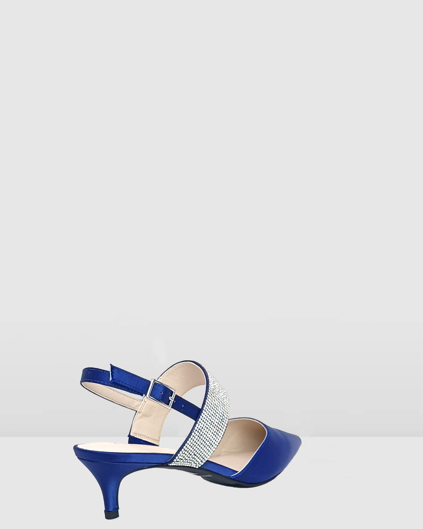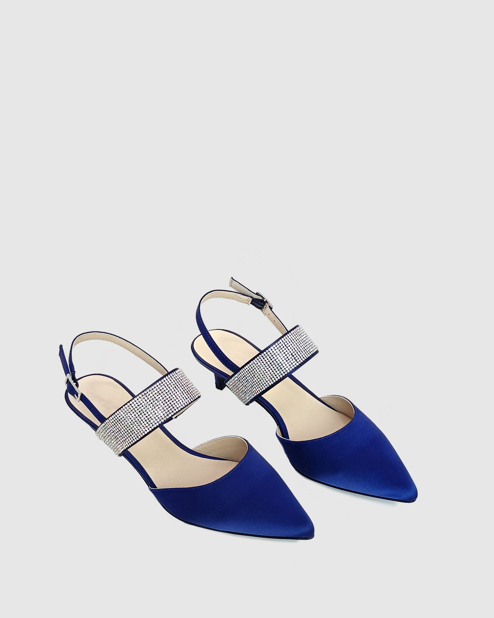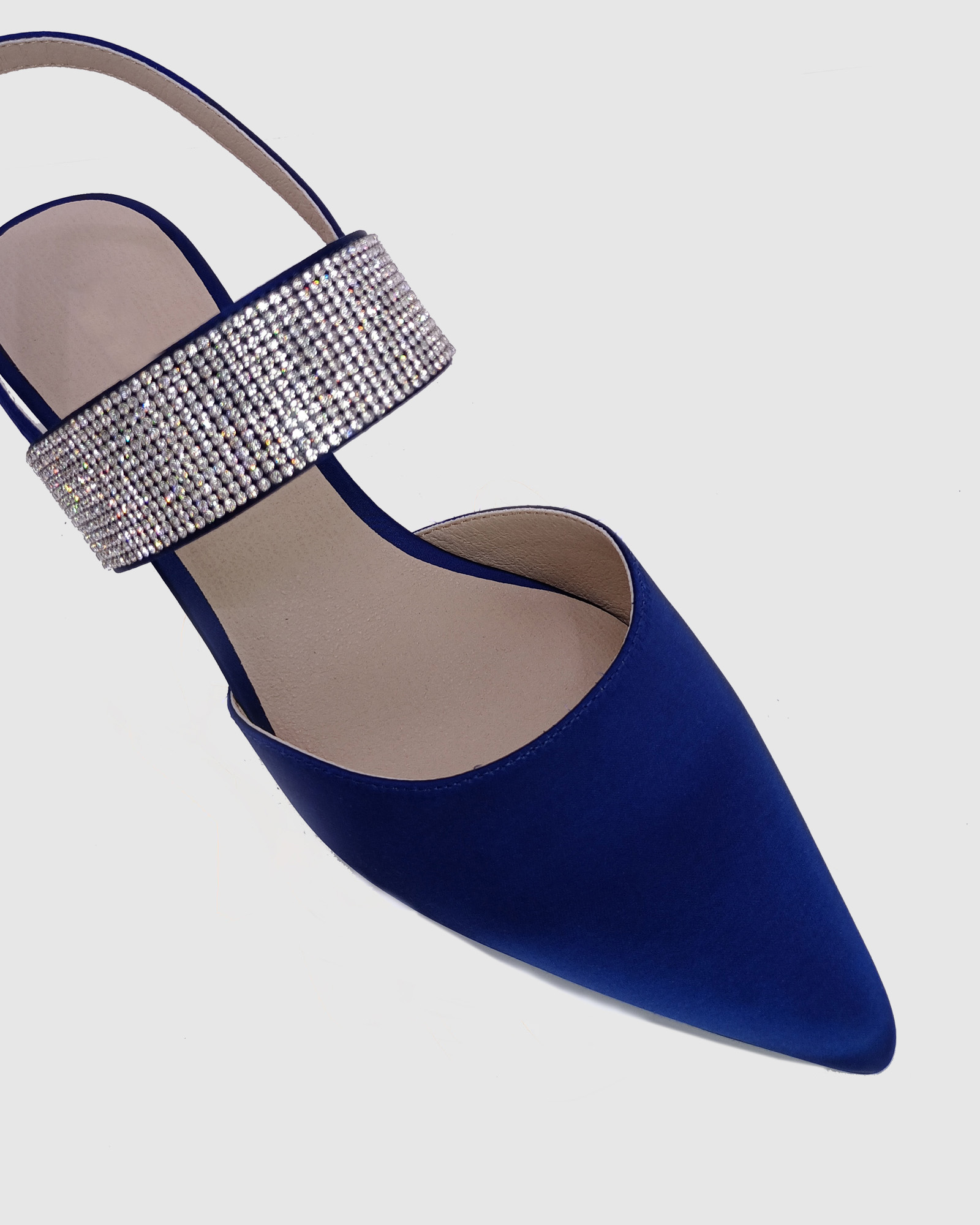 Natural Silk Satin Low Heel Rhinestones Embellished Women's Mule