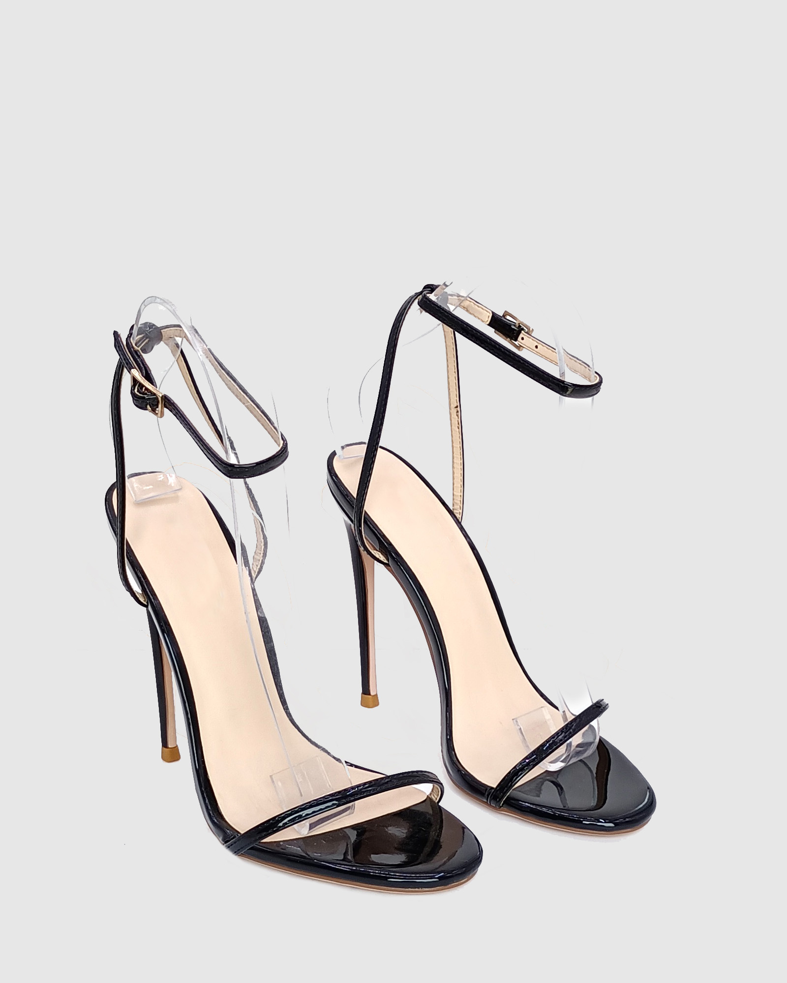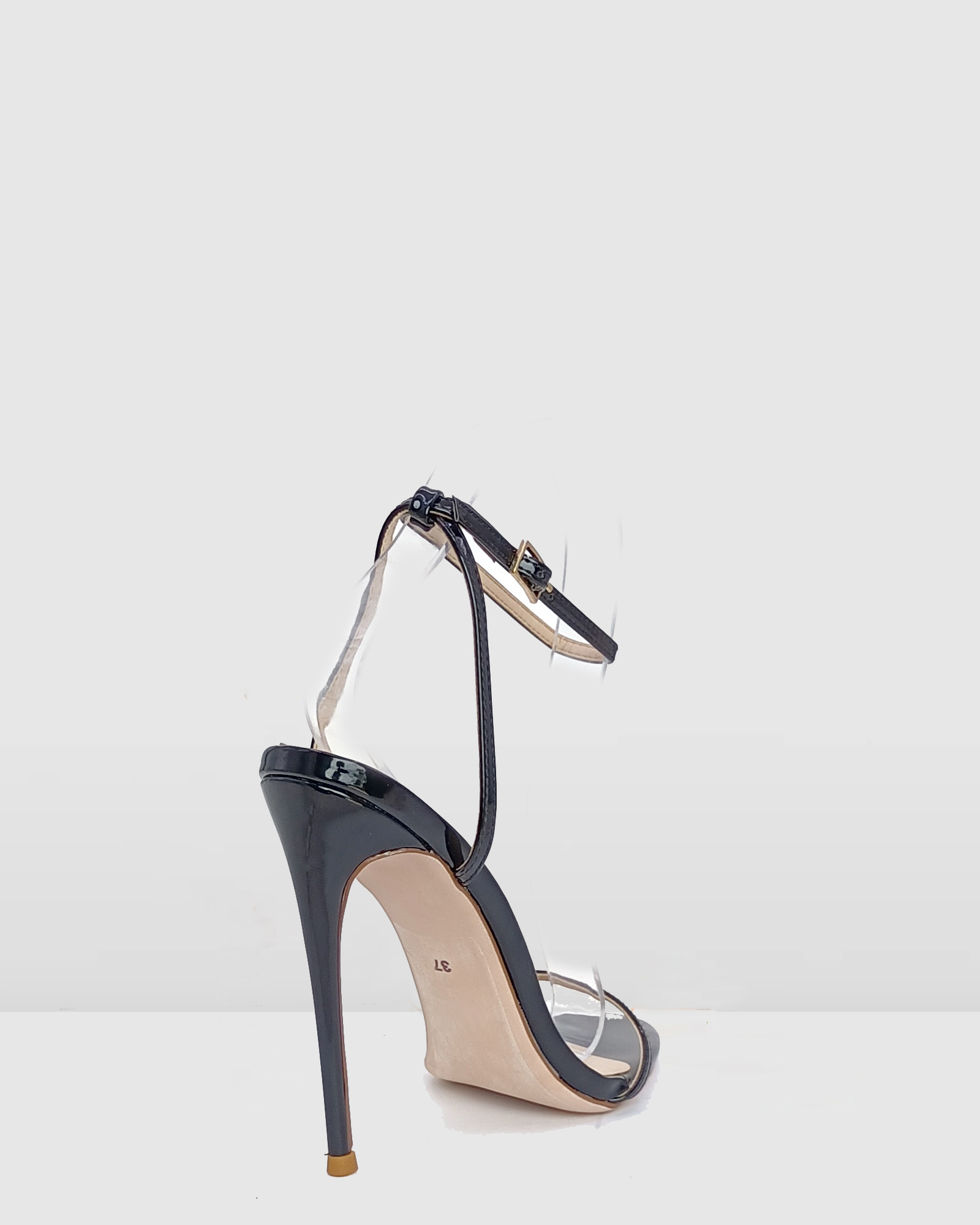 Black patent leather high heel women's sandal