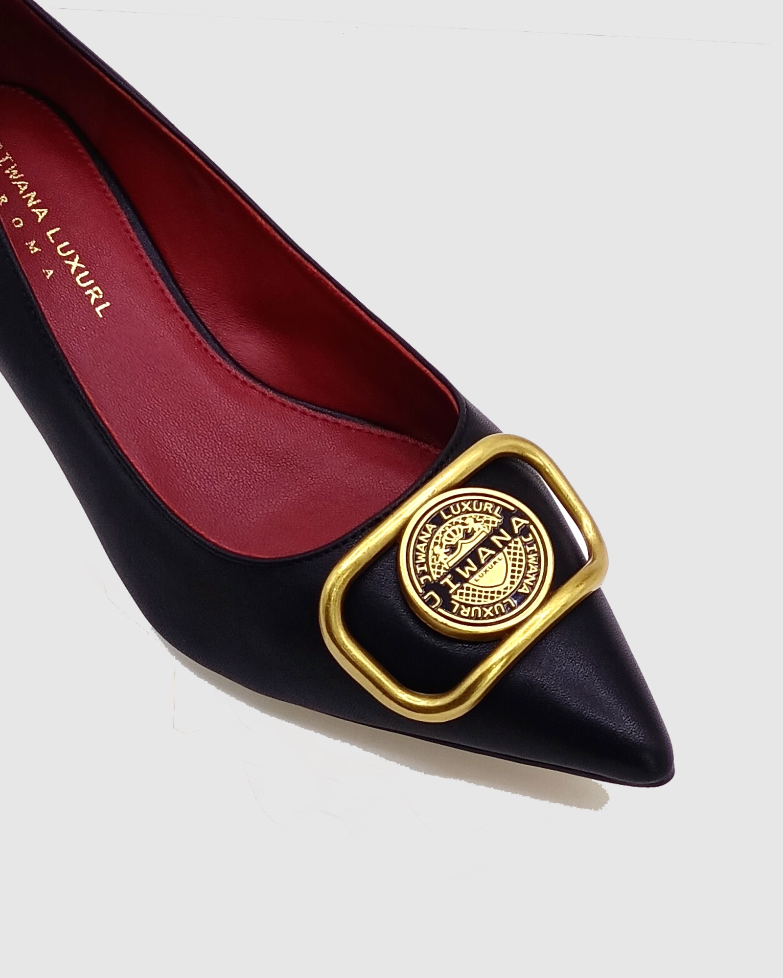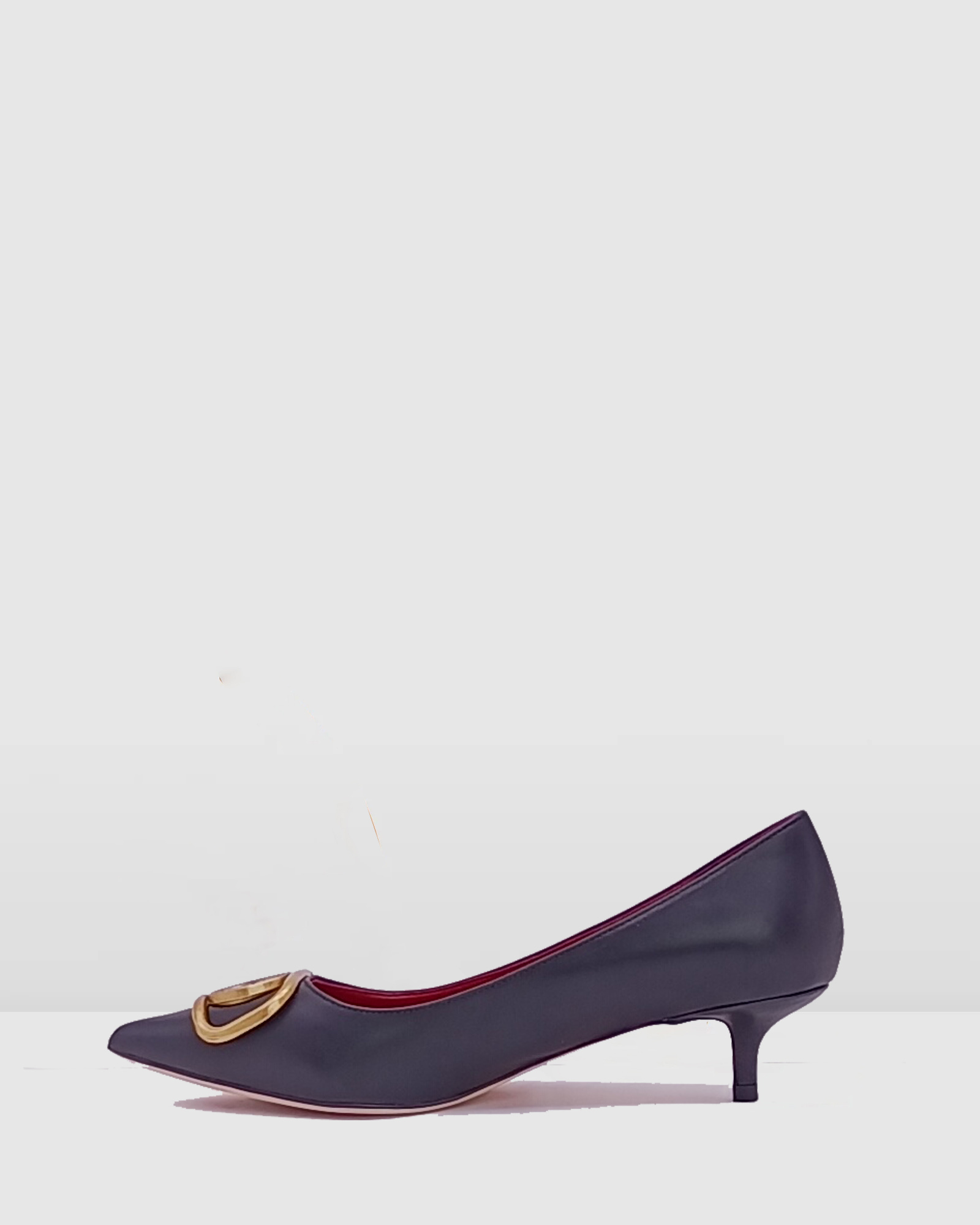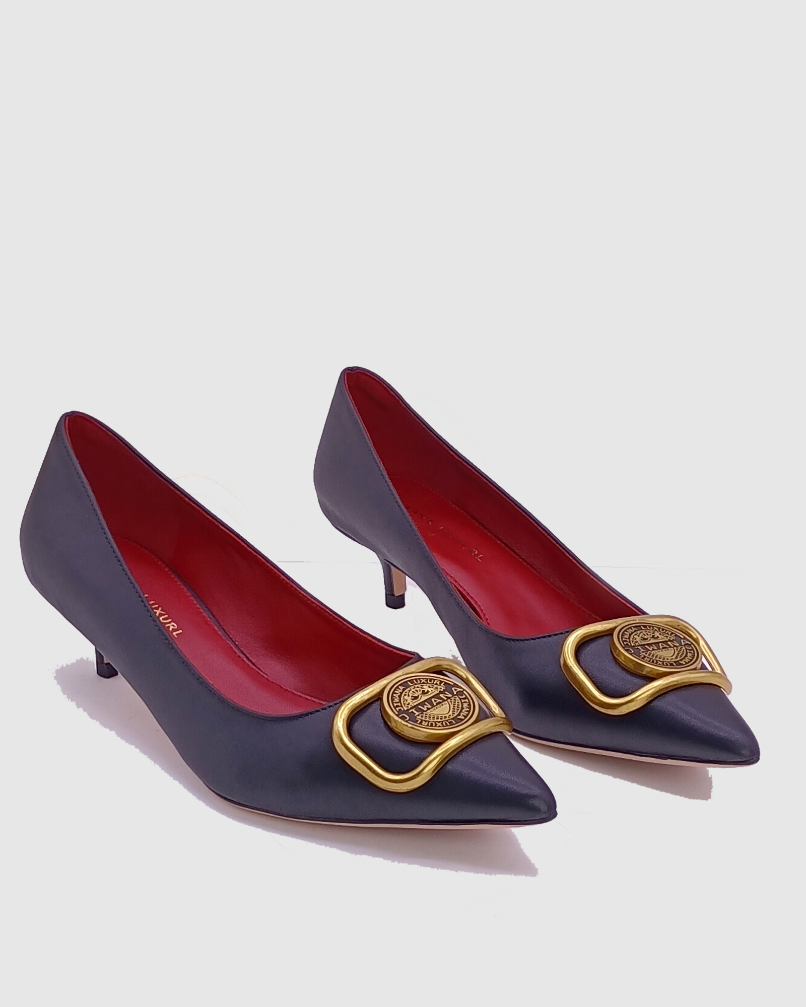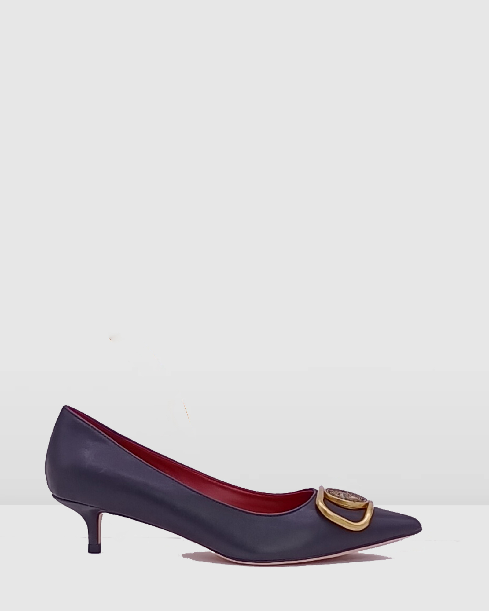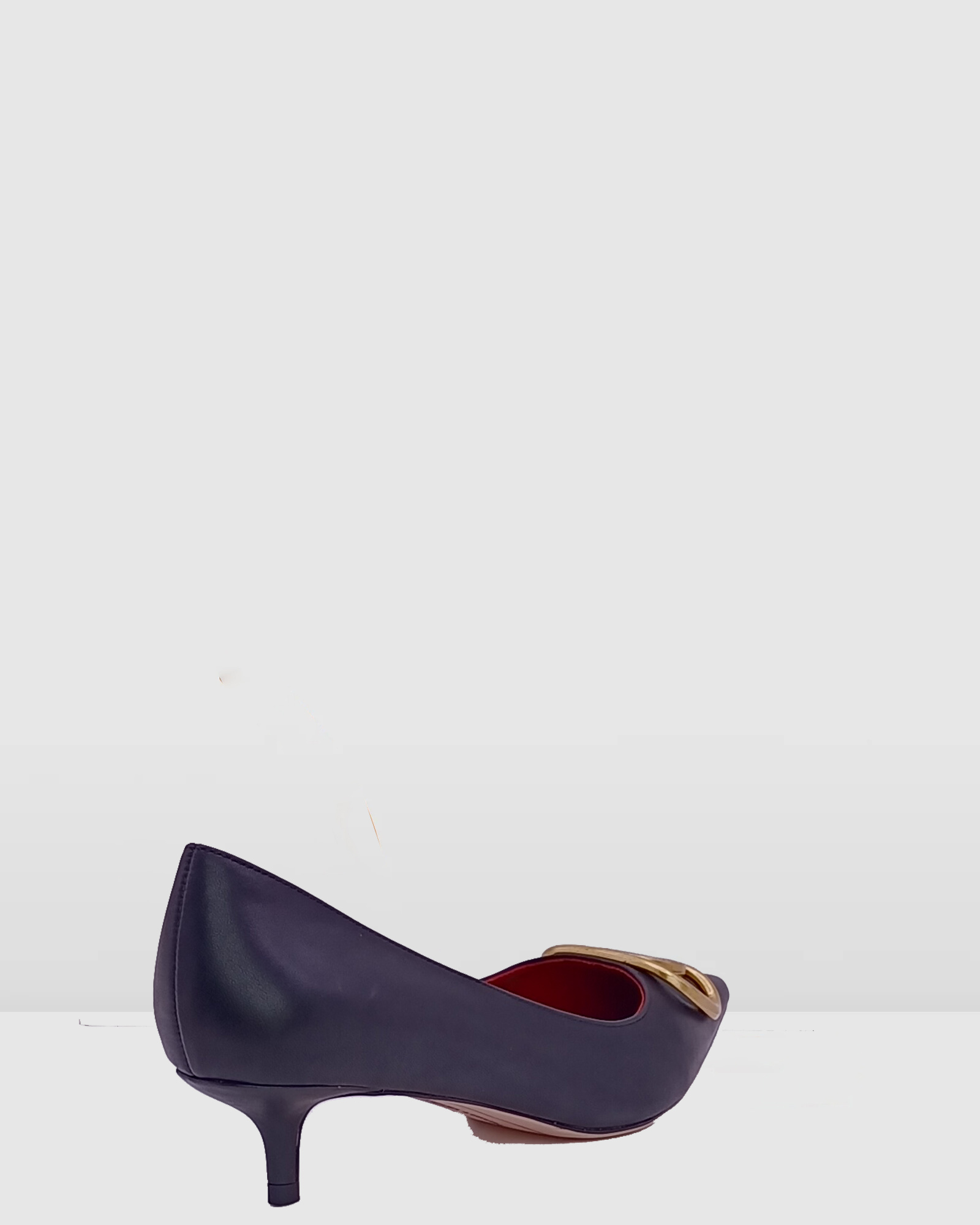 Black Leather Bronze Charm pointed toe mini heel women pump