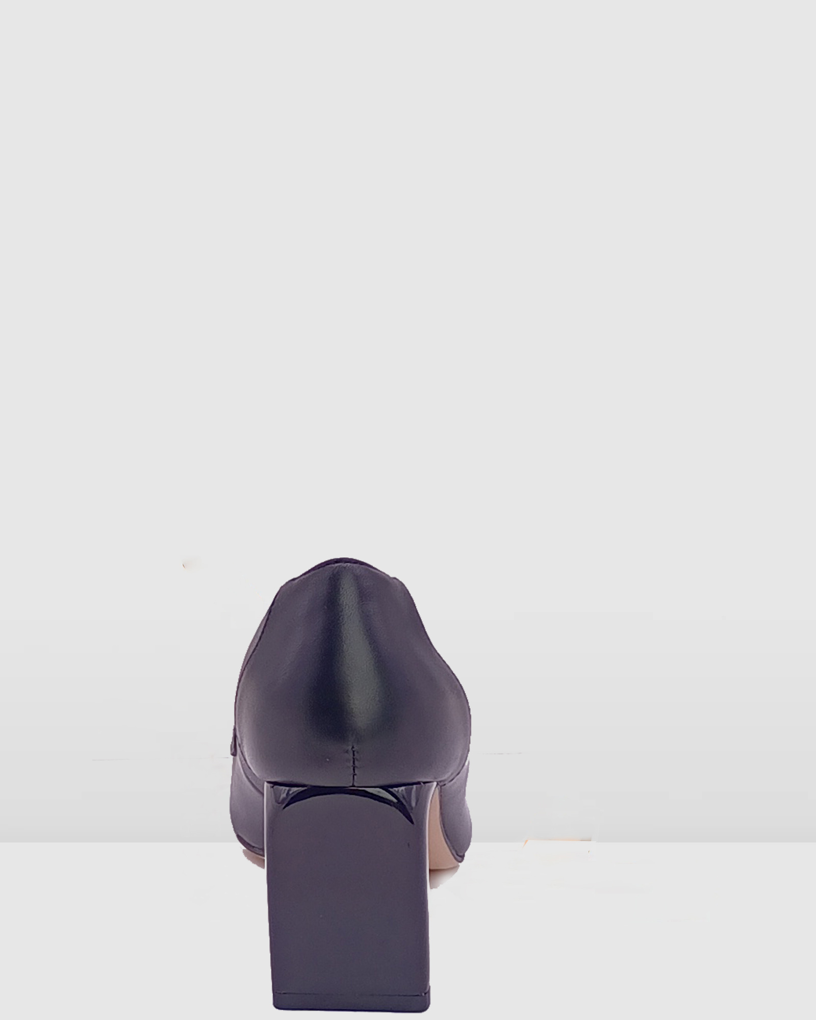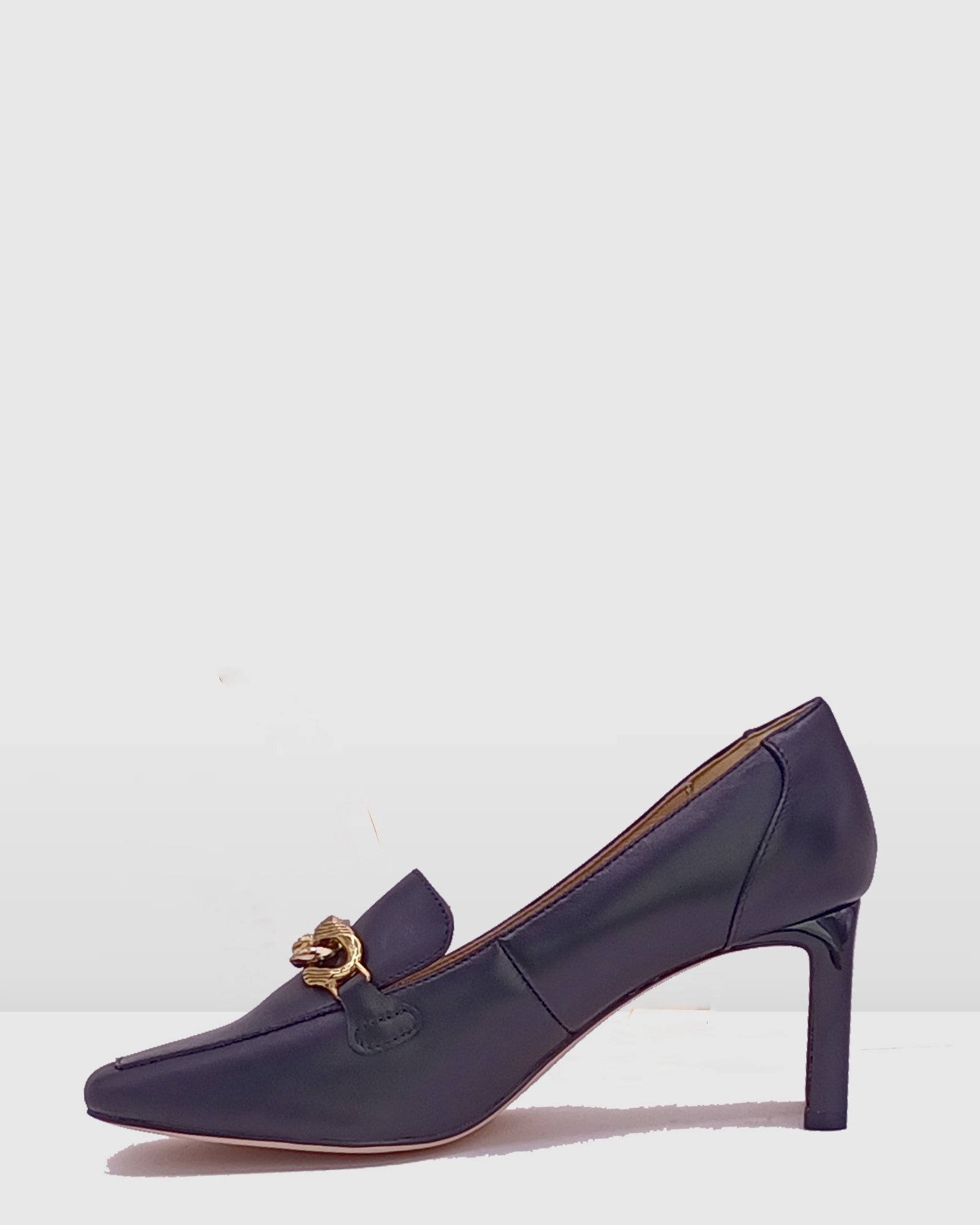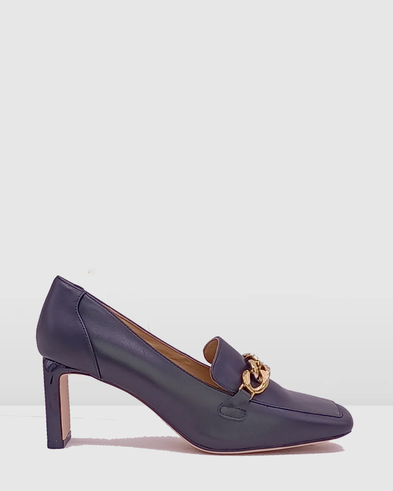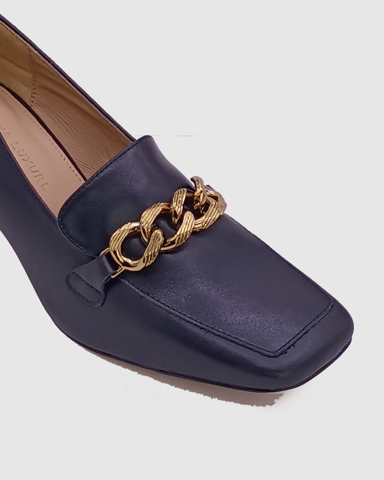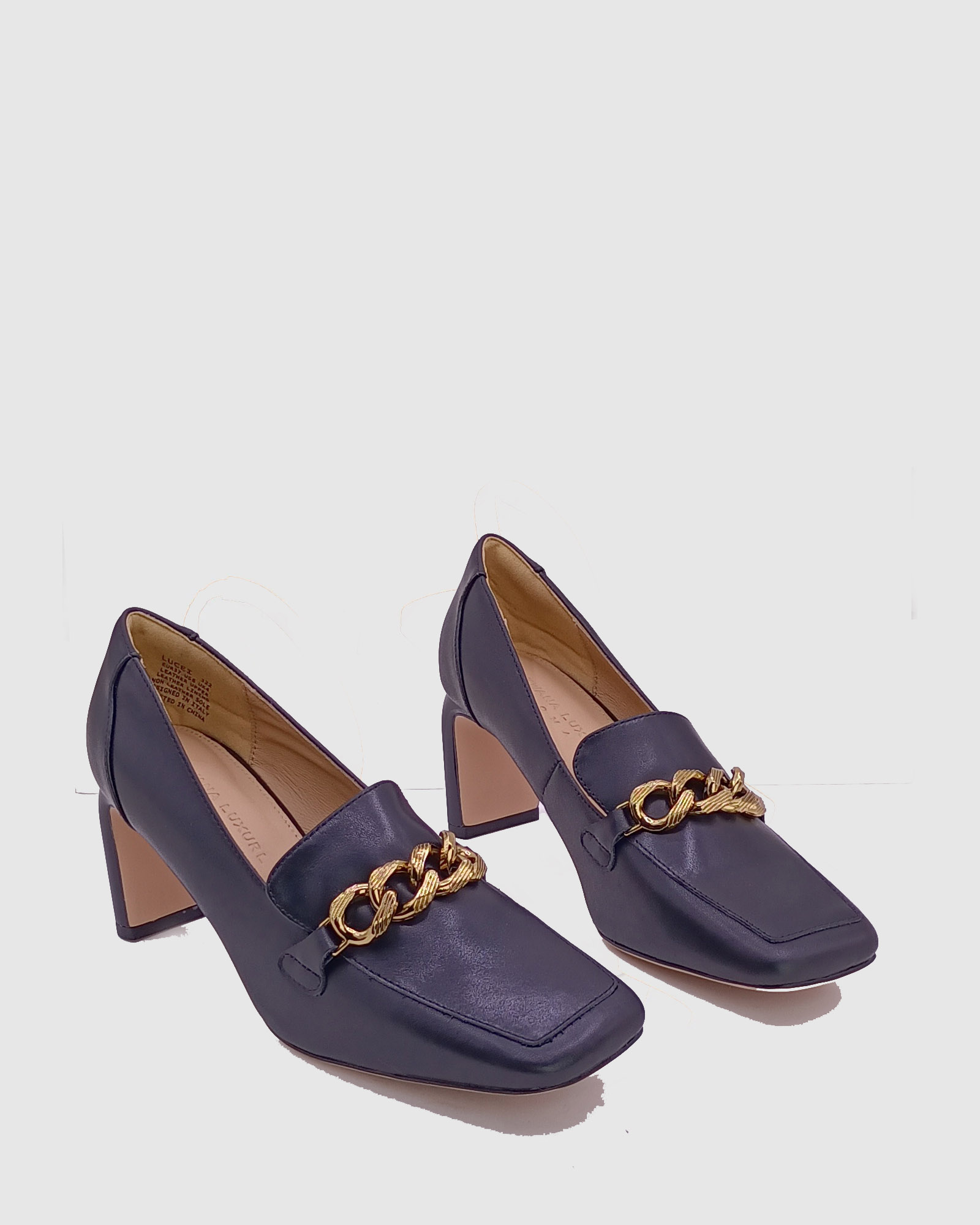 Black Leather chain embellished square heel women court